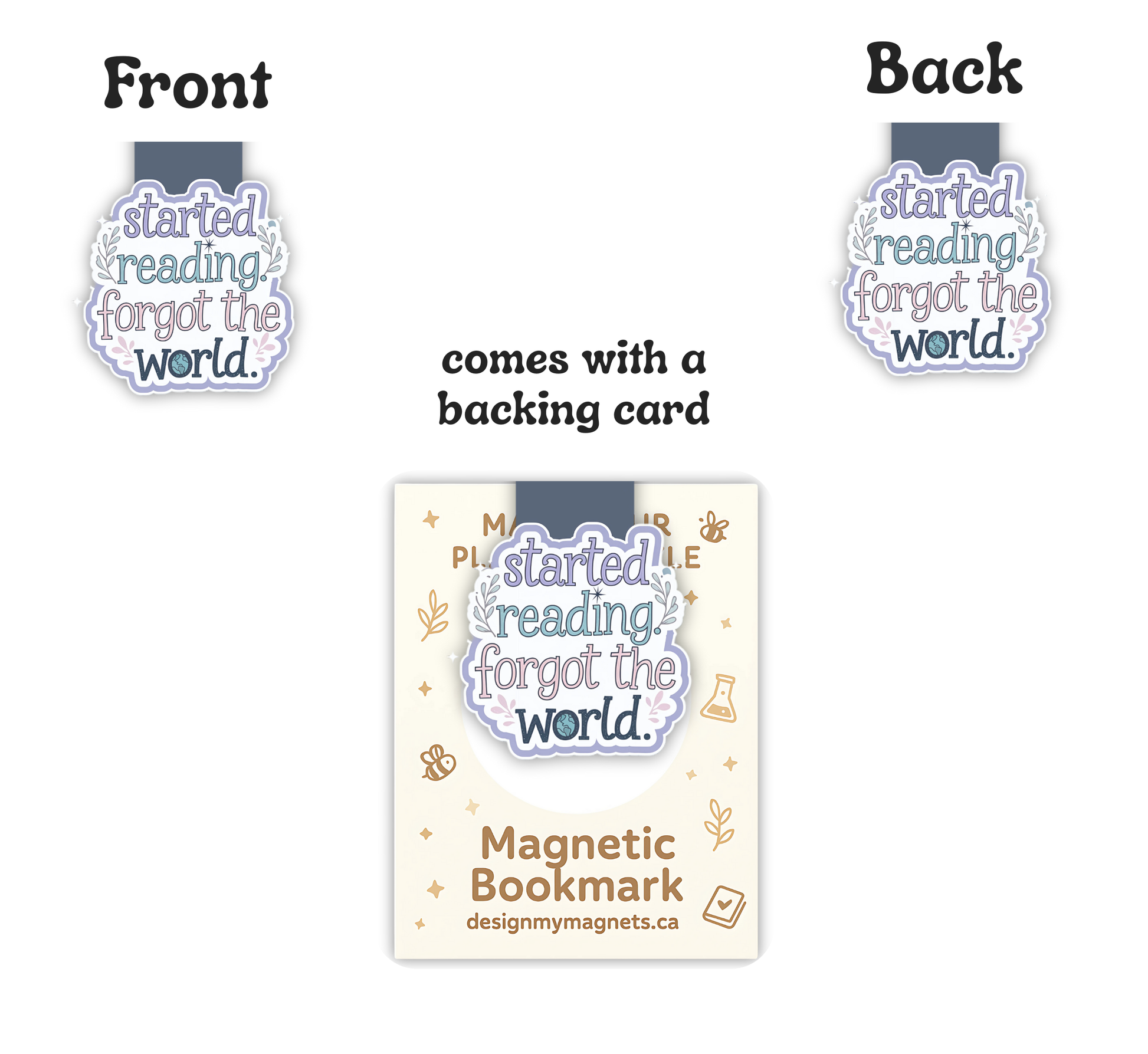 1 magnetic bookmark (front + back design)